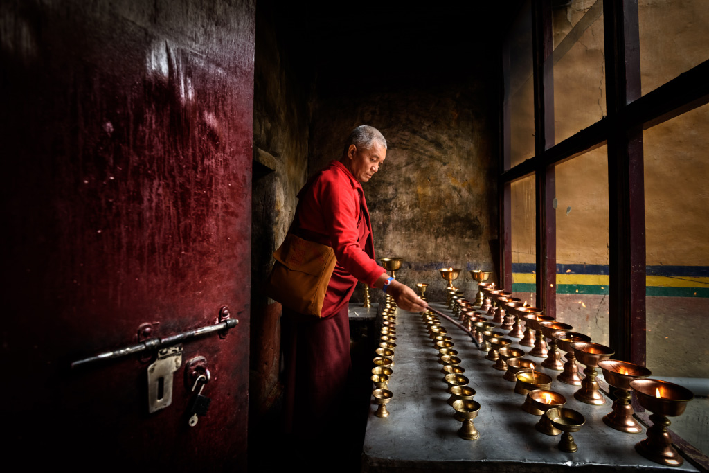 While Cambodia serves as “home” to all of the ATP photographers, and is quite clearly our specialty, we occasionally run photo tours abroad, like this one led by Alessandro in northern India. We’re used to the orange-clad monks of Cambodia, but this red-robed monk in Ladakh made for a welcome change. The use of light in Buddhist tradition serves to heal our mental afflictions and ignorance. The light in turn can be seen as the light of wisdom, which Buddha has spread through his teachings. We loved that this shows glimpses of the familiar and the unknown in equal measure. Photo taken during a photo tour in India lead by Alessandro.