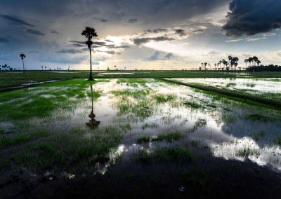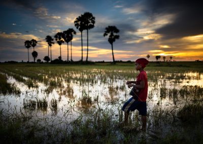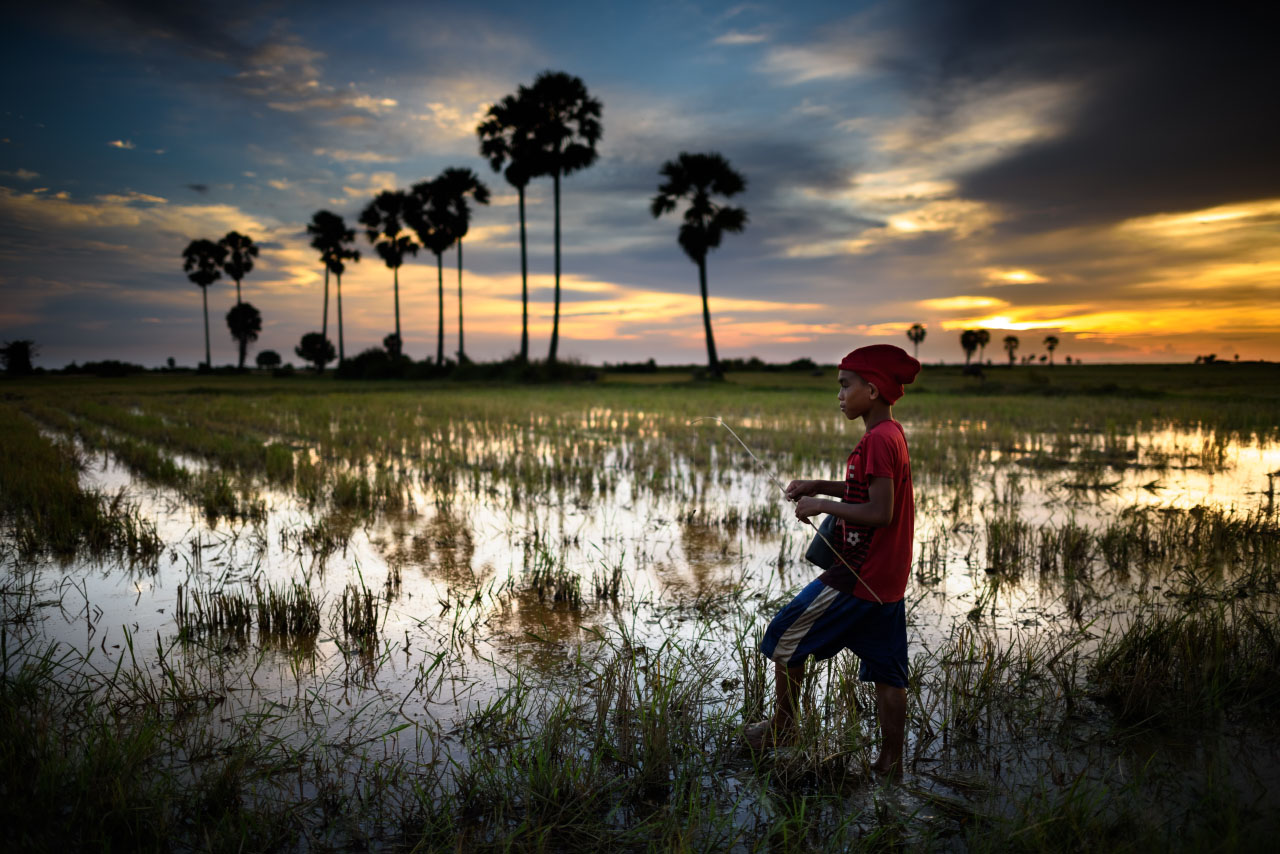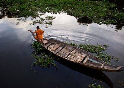 Our journey begins early in the morning with a visit to a monastery in a village a few kilometres from Siem Reap. Conditions permitting, you will have the opportunity to interact with and photograph Buddhist monks and their daily lives in the pagoda. After, we will explore the lush Cambodian countryside (green season only), witnessing a range of activities from rice farming to noodle making. In the afternoon, we will visit a village on the glassy waters of the Tonlé Sap lake. Here you will have the chance to photograph local life on the lake in an incredibly intimate manner as we travel by small rowing boat. Sunset will be enjoyed over the rice fields.