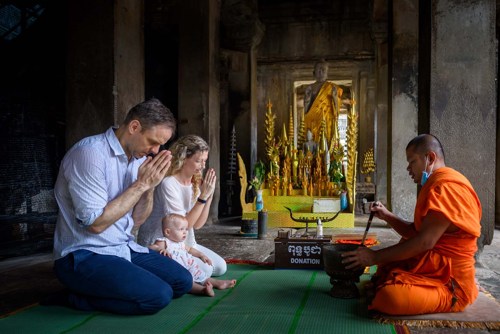 Focus on the chanting and the cool water. Because we personally know our monk partners, we can navigate the space discreetly to capture the magic while you remain in the moment